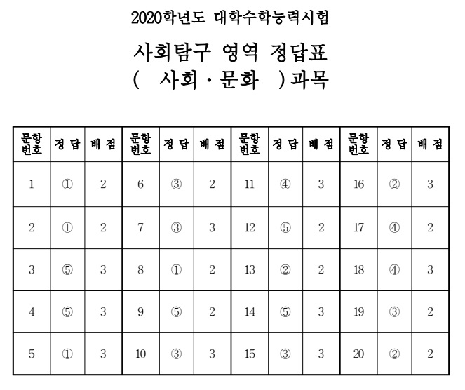 이 시험은 2019년 11월 15일에 시행된 '2020학년도 대학수학능력시험 사회 문화 영역' 입니다.