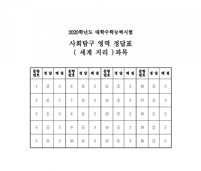 | 2020학년도 수능 세계 지리 문제, 정답 및 해설, 등급컷 (0) | 2019.11.17 |